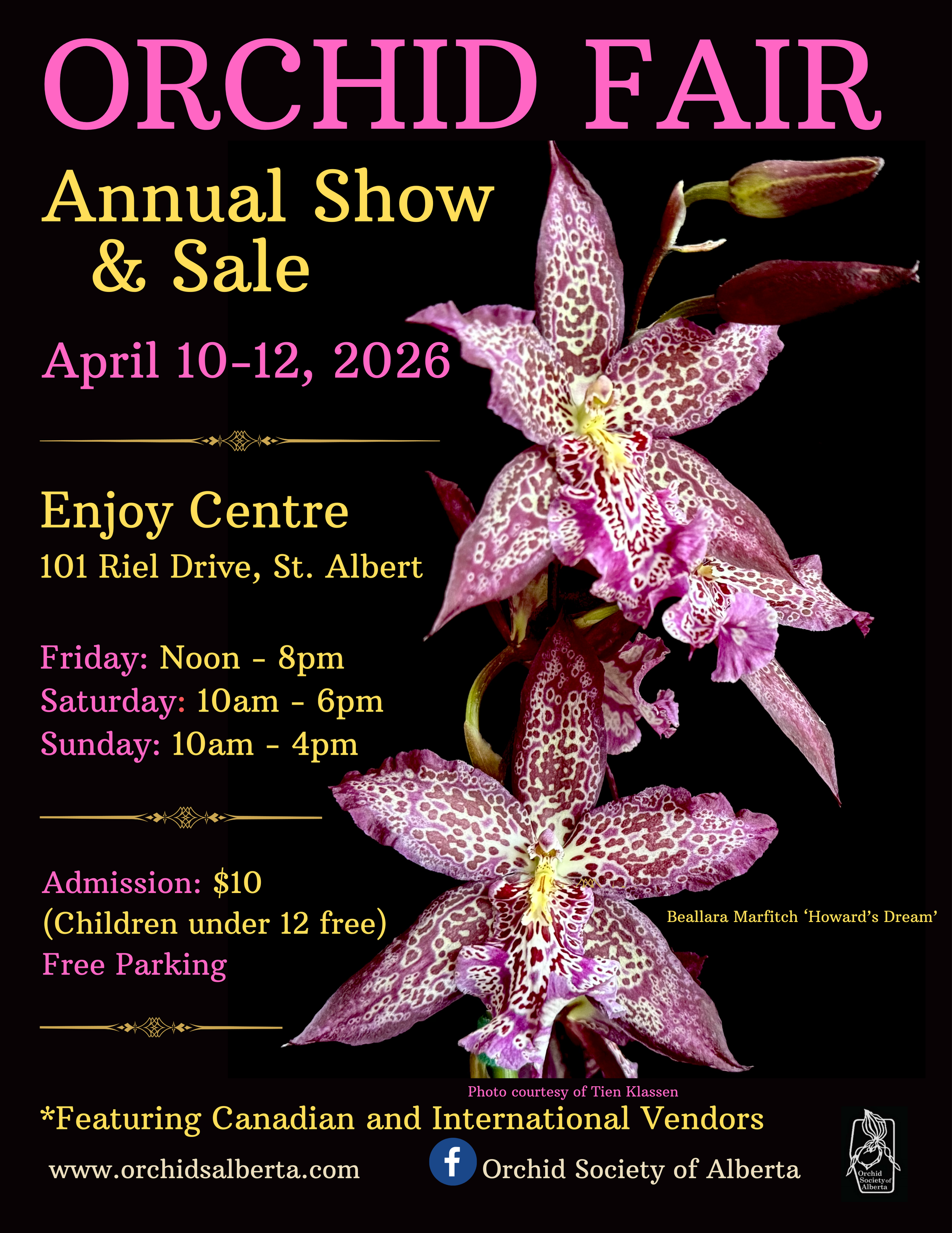 At the Orchid Society of Alberta, we celebrate the art and science of orchid growing. Whether you're a seasoned grower or just starting your orchid journey, you'll find a welcoming community here.
