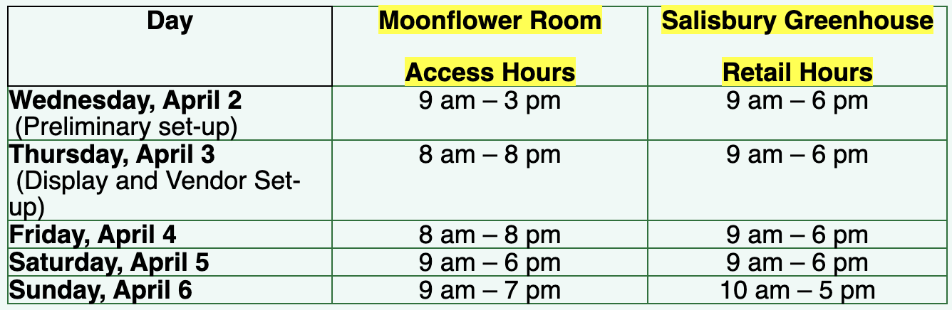 Thanks to our hardworking volunteers, Orchid Fair usually runs like a well-oiled machine. If you will be helping at the show, here are a few ground rules for setup:
